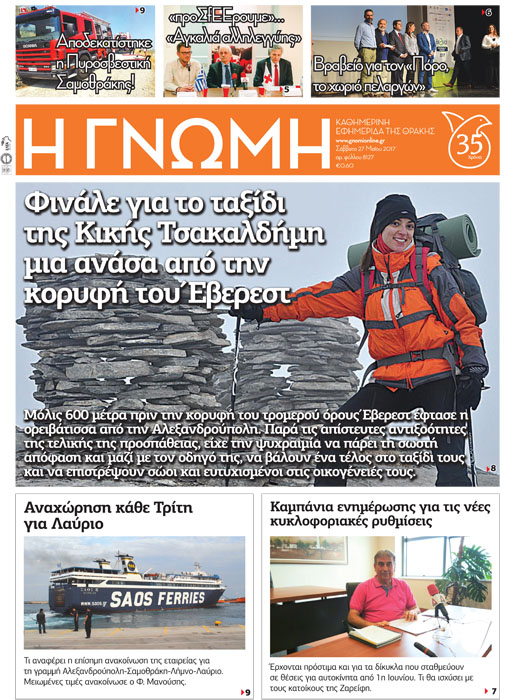 Σάββατο 27 Μαϊ. – Αρ.φύλλου 8127 Εκδόσεις 26 Μαΐου 2017 by Η Γνωμη 0Likes Εάν είστε συνδρομητής κάντε κλικ στο πρωτοσέλιδο για να ξεφυλλίσετε. Για να εγγραφείτε συνδρομητής, κάντε κλικ εδώ