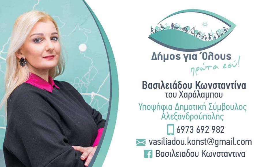 - Υποψήφια Δημοτική Σύμβουλος Αλεξανδρούπολης “Δήμος για Όλους – Πρώτα Εσύ”