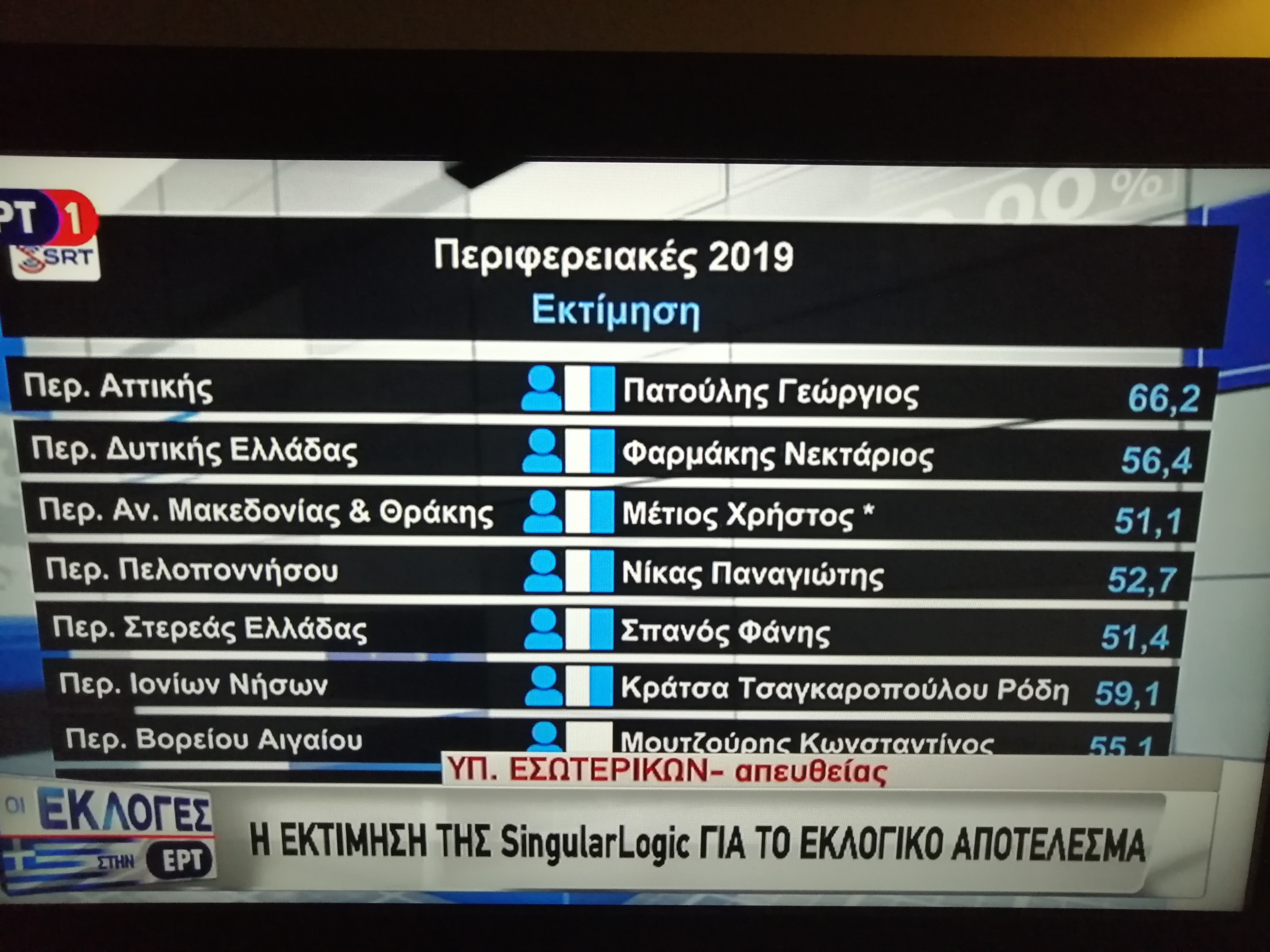 Με 51,1% προηγείται ο Χρήστος Μέτιος του Χριστόδουλου Τοψίδη για την Περιφέρεια ΑΜΘ, σύμφωνα με την εκτίμηση του εκλογικού αποτελέσματος από τη Singular Logic. Μάλιστα, η συγκεκριμένη πολύ μικρή διαφορά, χαρακτηρίστηκε από τους ειδικούς ως το κορυφαίο ντέρμπι της αποψινής βραδιάς.