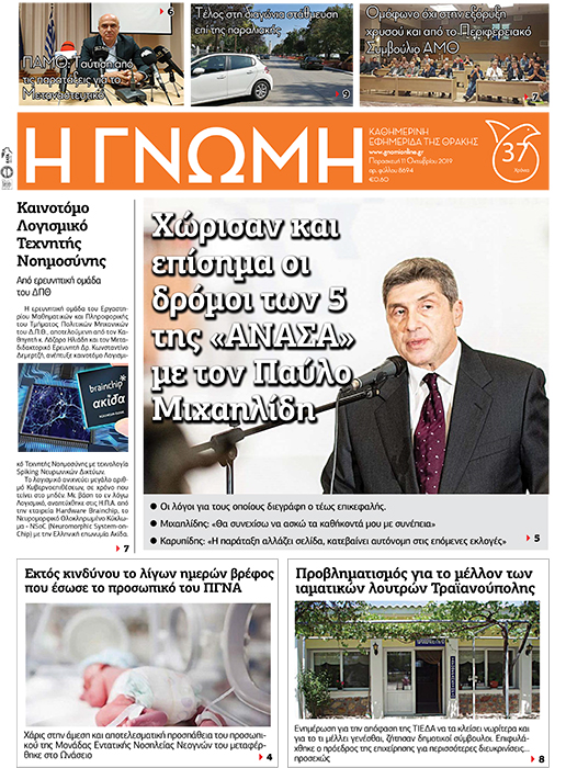Παρασκευή 11 Οκτωβρίου – Αρ.φύλλου 8694 ΓΝΩΜΗ Εκδόσεις 10 Οκτωβρίου 2019 by Η Γνωμη 0Likes Εάν είστε συνδρομητής κάντε κλικ στο πρωτοσέλιδο για να ξεφυλλίσετε. Για να εγγραφείτε συνδρομητής, κάντε κλικ εδώ