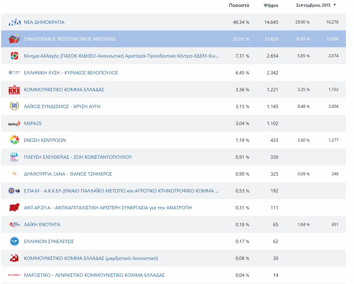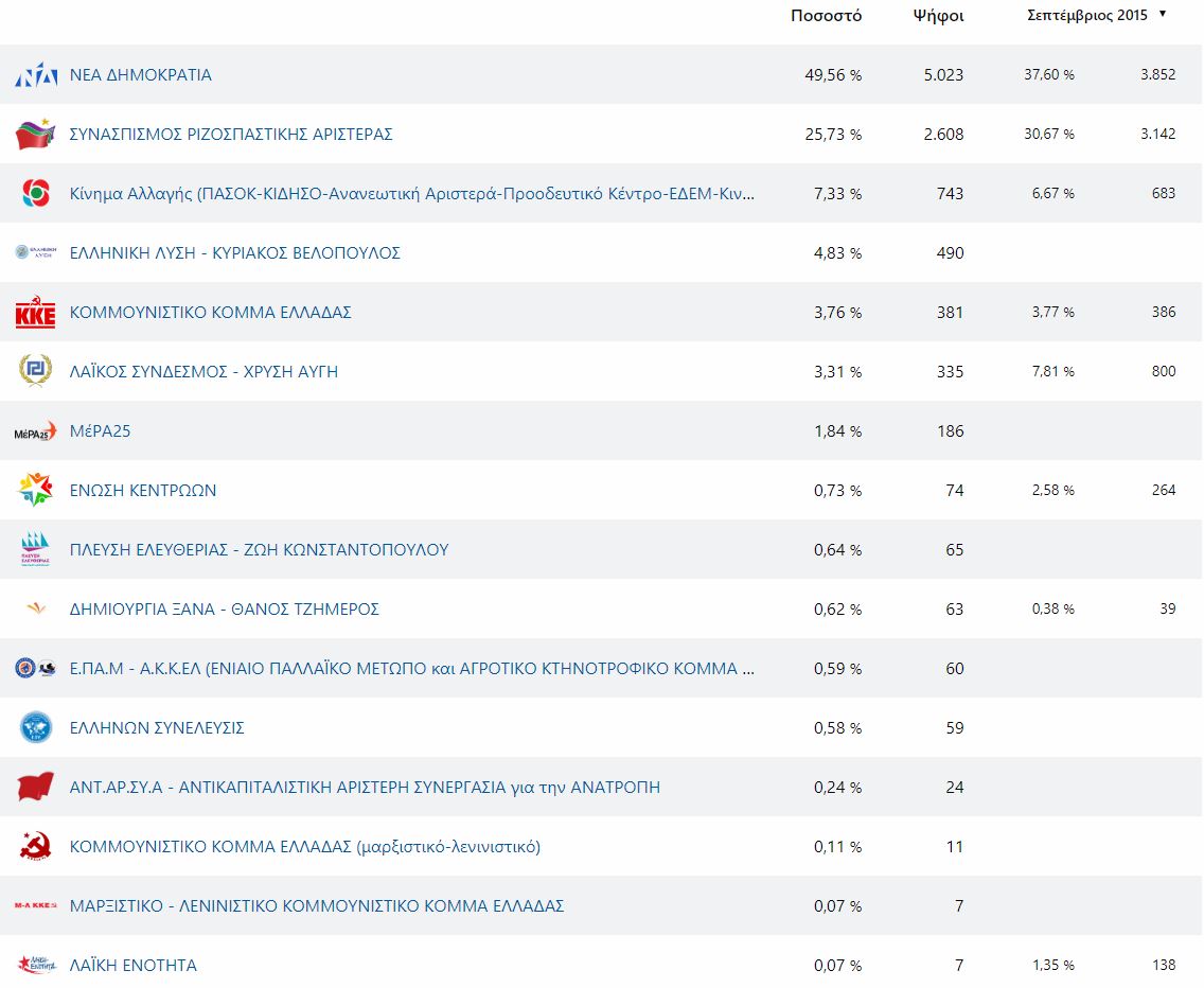 Αναλυτικά, τα ποσοστά των κομμάτων, ανά Δήμο στους πίνακες που ακολουθούν: