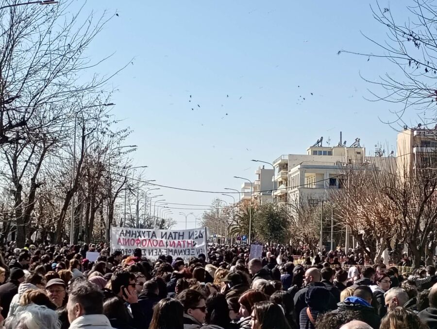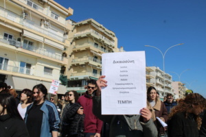 Στο κάλεσμα της φορέων, σωματείων, συλλογικοτήτων για το δυστύχημα στα Τέμπη ανταποκρίθηκαν εκατοντάδες που ένωσαν τη φωνή τους με τον υπόλοιπο κόσμο σε όλη τη χώρα. Κατά την συγκέντρωση στο Δημαρχείο και στην πορεία που ακολούθησε προς τον σιδηροδρομικό σταθμό και το δικαστικό μέγαρο, κεντρικά συνθήματα αποτέλεσαν το παλλαϊκό αίτημα για δικαίωση των νεκρών και η στήριξη των οικογενειών τους απέναντι σε κάθε προσπάθεια συγκάλυψης.