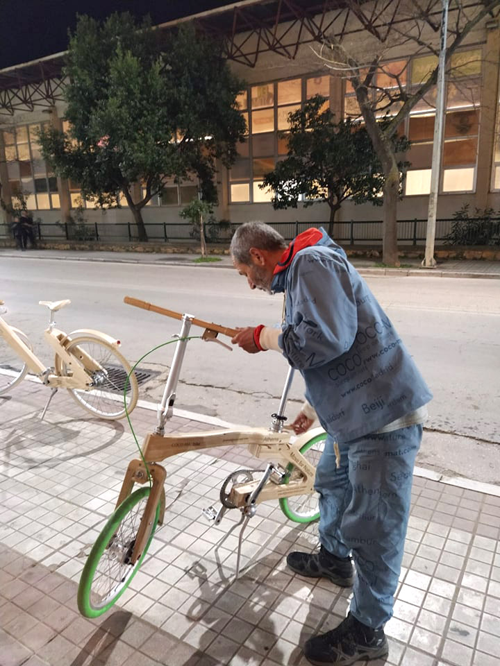Η σχέση με το ποδήλατο ; «Έρωτας μεγάλος. Το ξύλινο ποδήλατο νομίζω ότι νιώθει , αισθάνεται. Κάνω τα πάντα με το ποδήλατο. Εχω εκδήλωση στη Θεσσαλονίκη; Ξεκινάω με το ποδήλατο. 3 μέρες χρειάζομαι».