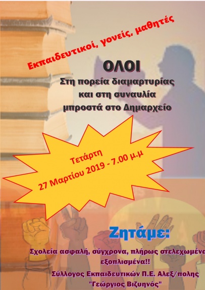 Πορεία διαμαρτυρίας και συναυλία, στην οποία καλούνται εκπαιδευτικοί, γονείς και μαθητές διοργανώνουν τα μέλη του...