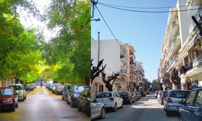 Τα δέντρα του άλλοτε καταπράσινου δρόμου κλαδεύτηκαν κακήν – κακώς τον περασμένο Οκτώβριο και σήμερα θυμίζουν, ακ...