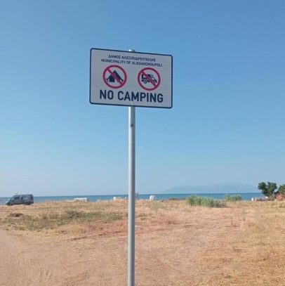Στην τοποθέτηση πινακίδων που απαγορεύουν την ελεύθερη κατασκήνωση “No Camping” στην παραλία Δελφίνι ...
