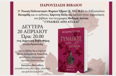 Ο συγγραφέας του “Σασμού” θα βρεθεί στην πόλη μας το Σάββατο 18 Απριλίου Ο Μορφωτικός Σύλλογο...