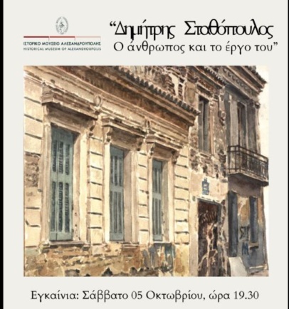 Έκθεση για τον ζωγράφο Δημήτρη Σταθόπουλο από 5 έως 19 Οκτωβρίου στο Ιστορικό Μουσείο Αλεξανδρούπολης. Μία ακόμα ...