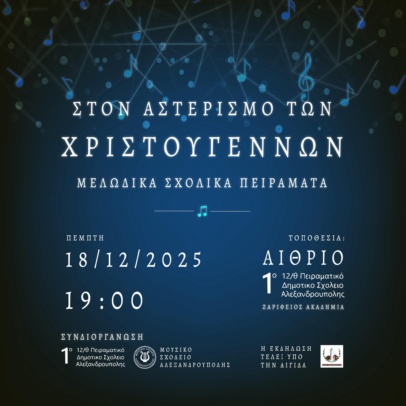 Το Μουσικό Σχολείο Αλεξανδρούπολης συμμετέχει δυναμικά στο χριστουγεννιάτικο κλίμα της πόλης, παρουσιάζοντας τρει...