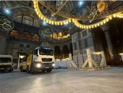 Φωτογραφίες που κυκλοφόρησαν στα μέσα κοινωνικής δικτύωσης δείχνουν το όχημα να οδηγείται πάνω στο ιστορικό δάπεδ...