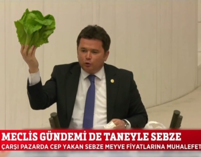 Διαμαρτύρονται για τον πληθωρισμό-ρεκόρ Κρατώντας μαρούλια, αγγουράκια, ντομάτες και μελιτζάνες εμφανίστηκαν οι β...