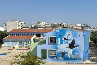 Δύο εντυπωσιακές τοιχογραφίες με το πιο απειλούμενο υδρόβιο πουλί της Ευρώπης, κοσμούν πλέον τους τοίχους των σχο...