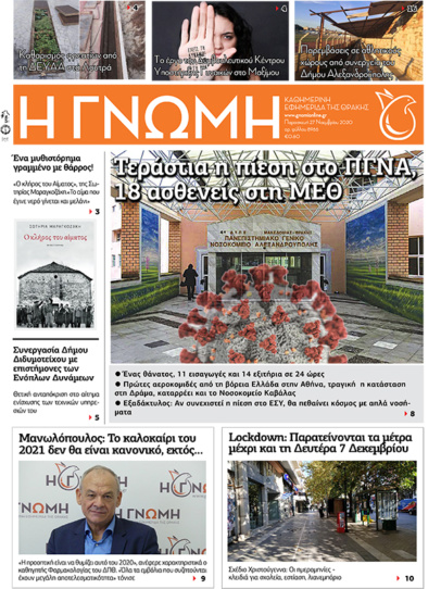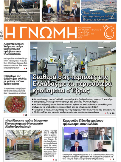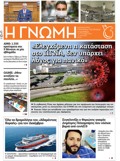 ΓΝΩΜΗ Εκδόσεις Παρασκευή 4 Δεκεμβρίου – Αρ.φύλλου 8971 3 Δεκεμβρίου 2020 by Η Γνωμη 1Like 0Σχόλια ...