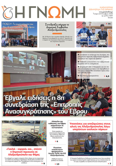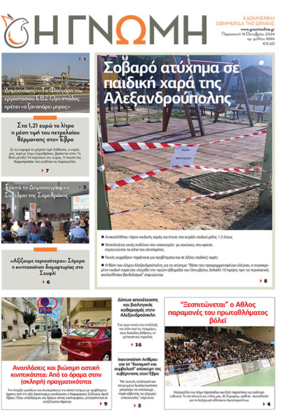 ΓΝΩΜΗ Εκδόσεις Τρίτη 8 Οκτωβρίου 2024 – Αρ.φύλλου 9886 8 Οκτωβρίου 2024 by Η Γνωμη 8Likes 0Σχόλια ...