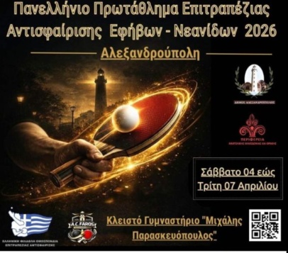 Η Αλεξανδρούπολη θ’ αναδείξει φέτος τους καλύτερους της ηλικιακής κατηγορίας κάτω των 19 στην επιτραπέζια αντισφα...