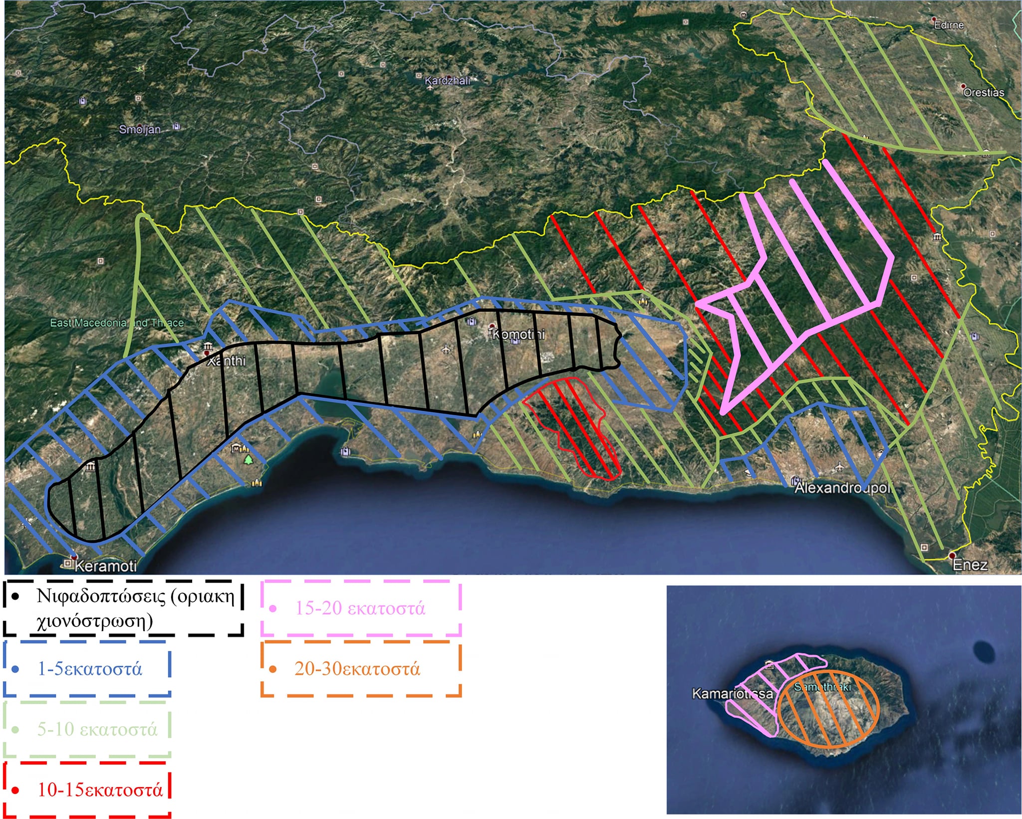 Συνολικά, από την κακοκαιρία η νότια και ανατολική πεδινή Ροδόπη (Νομός Ροδόπης), η Σαμοθράκη και ο βόρειος και ο κεντρικός πεδινός Έβρος, δίνουν τις μεγαλύτερες πιθανότητες για μεγαλύτερα ύψη χιονόστρωσης. Σε ό,τι αφορά τα ορεινά, ιδιαίτερη σημασία πρέπει να δοθεί στα ορεινά μεταξύ των νομών Ροδόπης και Έβρου, όπου αναμένονται οι χιονοστρώσεις να φτάσουν έως και τα 20εκ τοπικά (όχι και κάτι πρωτόγνωρο για τις περιοχές!). Το νησί της Σαμοθράκης θα δεχτεί στα πεδινά έως 20εκ χιόνι και στα ορεινά αρκετά περισσότερο.