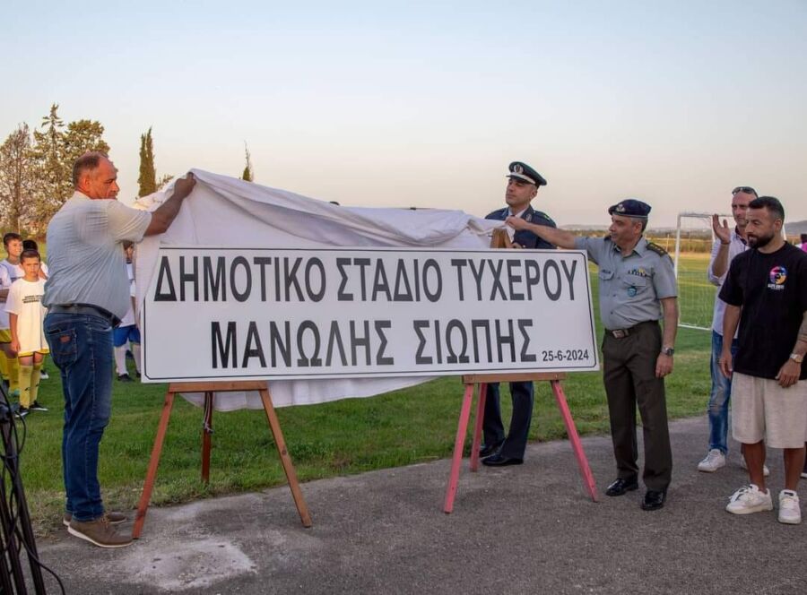 Το όνομα του διεθνούς με καταγωγή από το Τυχερό ποδοσφαιριστή, Μανώλη Σιώπη, θα φέρει πλέον το Δημοτικό Στάδιο Τυχερού του Δήμου Σουφλίου, μετά την επίσημη τελετή ονοματοδοσίας που πραγματοποιήθηκε το απόγευμα της 25ης Ιουνίου 2024.