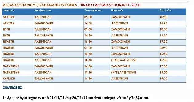 Δείτε παρακάτω τον πίνακα δρομολογίων