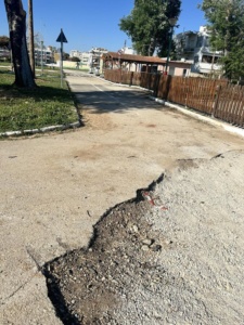 Παράλληλα, το οδόστρωμα εμφανίζει εκτεταμένες φθορές, με το έδαφος να βρίσκεται σε κακή κατάσταση, καθιστώντας δύσκολη και σε σημεία επικίνδυνη τη χρήση του χώρου από παιδιά. Βρύσες που βρίσκονται εκτός λειτουργίας στερώ ντας τη δυνατότητα να ξεδιψάσει κάποιος, τα παγκακια σε έλλειψη, παρότι κρίνονται ιδιαίτερα χρήσιμα.