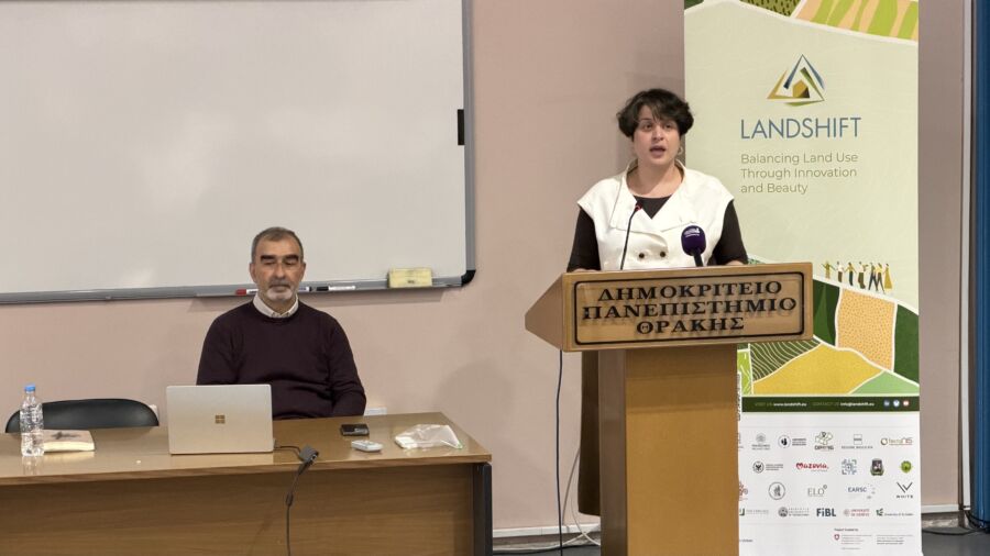 Χαιρετισμό απηύθυνε ο Αντιπεριφερειάρχης κύριος Βενετίδης και στη συνέχεια ακολούθησαν ομιλίες και παρουσιάσεις από τον κύριο Γαλατσίδα Σπύρο, κοσμήτορα της Σχολής, την κυρία Ραδόγλου Καλλιόπη, καθηγήτρια του Τμήματος Δασολογίας και Διαχείρισης Περιβάλλοντος και Φυσικών Πόρων, την κυρία Κοπρά Χρύσα μέλος της ομάδας έργου «Landshift» και από την κυρία Σαρηγιαννίδου Εύα, μέλος της ομάδας του ΓΑΑ. Παρεμβάσεις πραγματοποιήθηκαν, επίσης, από την κυρία Γιώρτσου Μαρία, μέλος της ομάδας του ΓΑΑ και από τον κύριο Χαριτούδη, από την Διεύθυνση Αγροτικής Οικονομίας και Κτηνιατρικής Ορεστιάδας.