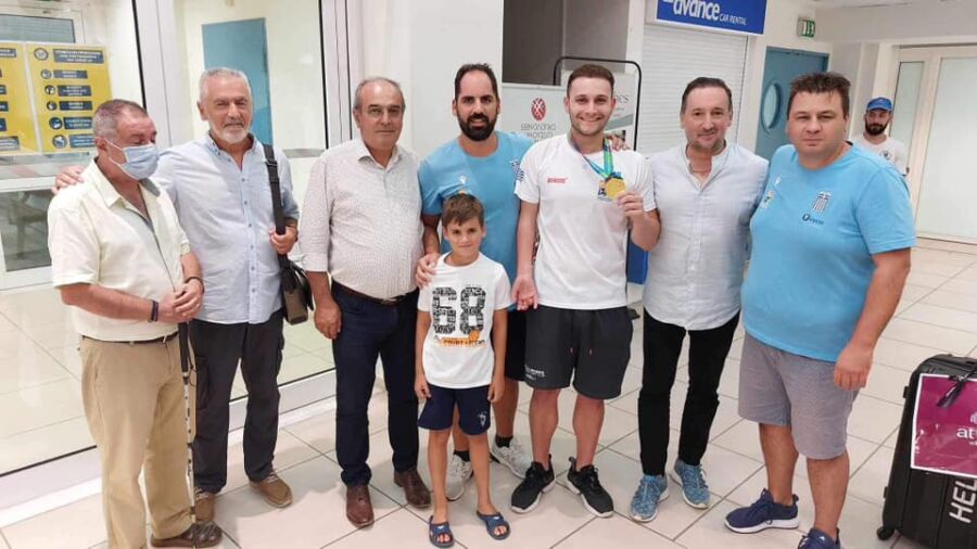 Μαζί του με την ίδια πτήση επέστρεψαν οι αθλητές μας, Δημήτρης Καρυπίδης και Αλέξανδρος Λεριός που επίσης συμμετείχαν στο Παγκόσμιο Πρωτάθλημα στο Μάντσεστερ, καθώς και οι προπονητές τους.
