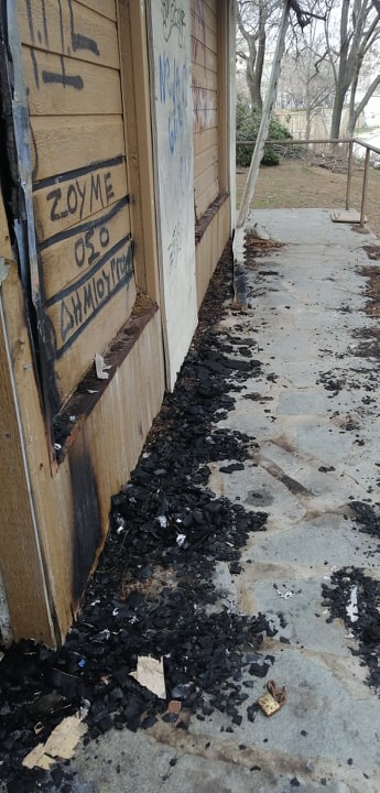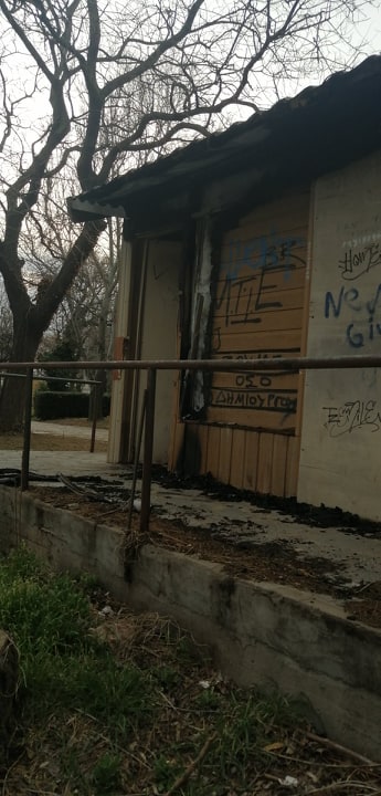 Από σήμερα, οσοι περπατούν στο σημείο εκείνο αντικρίζουν αυτό το απαράδεκτο θέαμα. Τα δημόσια WC με φανερά τα σημάδια φωτιάς. Άγνωστο πώς και ποιος προχώρησε σε αυτή την πράξη, είναι ολοφάνερα τα σημάδια των καταστροφών.