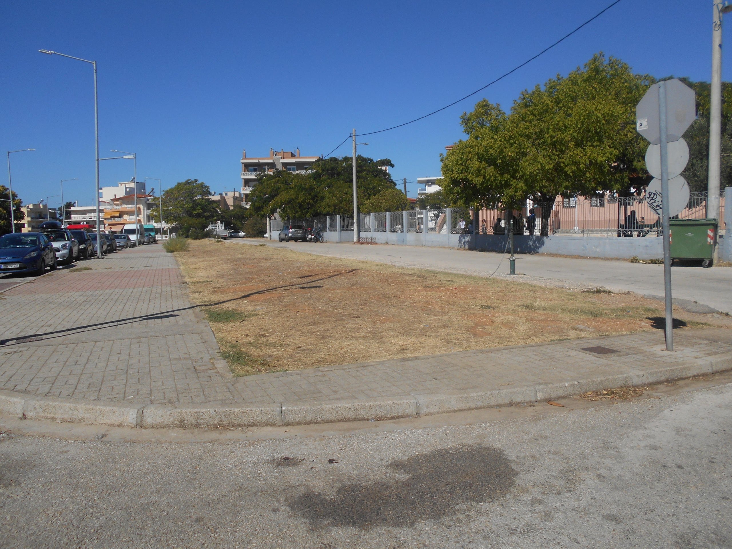 Θα ξεκινήσω με την οδό Αλεξάνδρου Παπαναστασίου (τον δρόμο που δημιουργήθηκε με την επικάλυψη του Ρέματος Βανικιώτη) και στο τμήμα που βρίσκεται στην αρχή αυτής. Μπροστά από το 7ο Δημοτικό Σχολείο, που είναι μεταξύ αυτής της οδού και της οδού Δήμητρας, υπάρχει μια κενή λωρίδα, μήκους περίπου 100 μέτρων και πλάτους 7-8 μέτρων. Μπροστά σ΄ αυτήν την λωρίδα, τώρα που αρχίζουν τα Σχολεία, καθημερινά γονείς αποβιβάζουν ή αφήνουν τα παιδιά τους και περιμένουν να τα παραλάβουν όταν σχολνούν από το σχολείο. Κάποτε η λωρίδα αυτή ήταν καταπράσινη με γκαζόν. Σήμερα είναι γυμνό χώμα και ξερά χόρτα. Τις καλές ημέρες οι γονείς και συνοδοί περιμένουν ή μέσα στα αυτοκίνητά τους ή κάτω από τον ήλιο και τις χειμωνιάτικες μέρες κάτω από την βροχή και μέσα στο κρύο. Αυτή την κατάσταση θα αντικρίσουν σε λίγες μέρες τα μικρά παιδιά που θα πάνε στο σχολείο τους και με αυτή την εικόνα θα μπούνε στις τάξεις τους. Την ίδια εικόνα θα ζήσουν και οι γονείς και συνοδοί τους.
