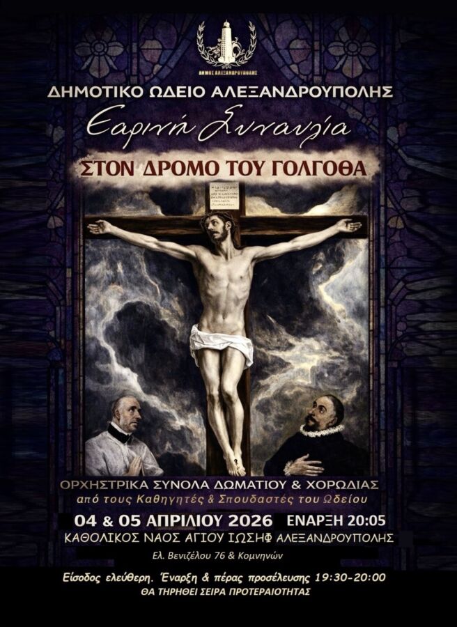 Το Δημοτικό Ωδείο Αλεξανδρούπολης υποδέχεται και φέτος τη Μεγάλη Εβδομάδα με την καθιερωμένη εαρινή συναυλία του, η οποία θα πραγματοποιηθεί στον Καθολικό Ναό Αγίου Ιωσήφ της πόλης.