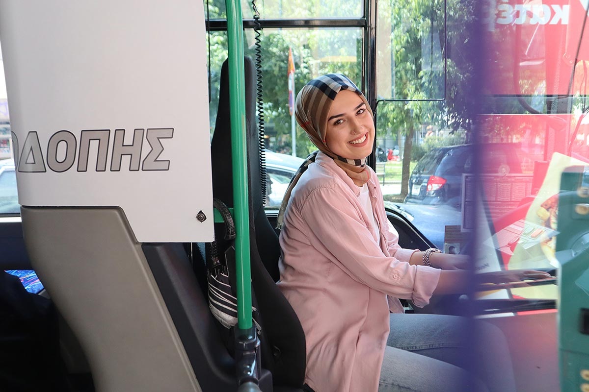 «Ξεκίνησα με τα mini bus, μετά πήρα το 10μετρο και τώρα οδηγάω το 12μετρο. Όταν ανοίξουν τα Πανεπιστήμια θα αρχίσω να οδηγώ και τις φυσούνες, που μεταφέρουν φοιτητές», λέει.