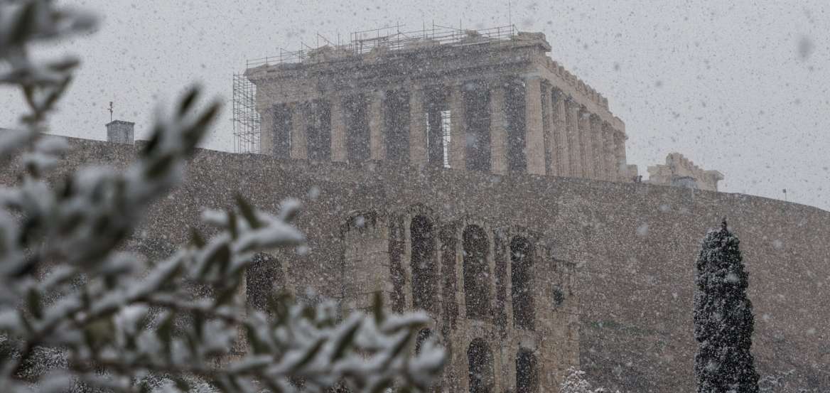 Η Ακρόπολη έχει γίνει άσπρη από τα χιόνια που έχει φέρει η κακοκαιρία Ελπίς. Πρόκειται για μία από τις εικόνες που δεν έχουν συνηθίσει να βλέπουν οι Αθηναίοι. Αρκετοί, μάλιστα, περπατούν στη Διονυσίου Αρεοπαγίτου σε πρωτόγνωρες συνθήκες: Συνθήκες, όπως λένε, που μόνο Ελλάδα δεν θυμίζουν.