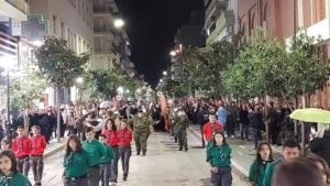 Αμέσως μετά πραγματοποιήθηκε συνάντηση των επιταφίων του Μητροπολιτικού Ναού και του Ιερού Ναού Αγίου Ελευθερίου μπροστά στο Δημαρχείο της πόλεως. Εκεί ανεπέμφθη δέηση και ο Μητροπολίτης μας απηύθυνε ευχές προς τους συγκεντρωμένους πιστούς των δύο ενοριών.