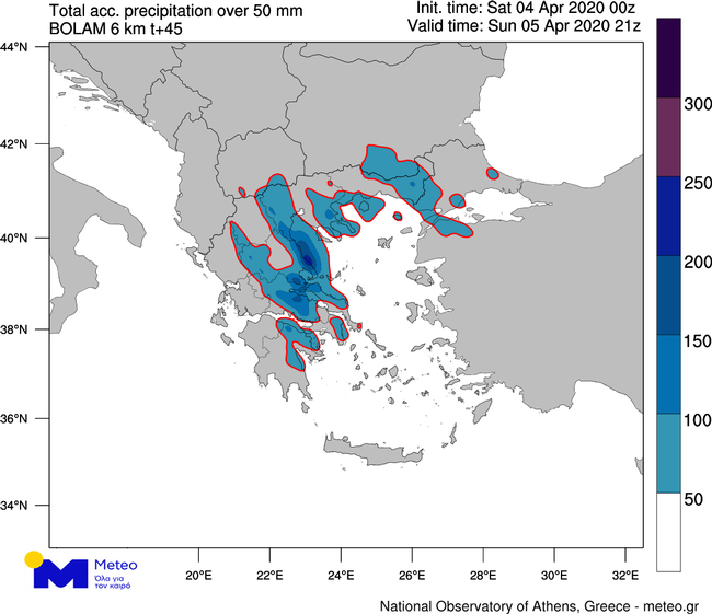 Ήδη από τις πρώτες πρωινές ώρες σε Έβρο, Θράκη, η βροχόπτωση είναι έντονη. Σύμφωνα με τα διαθέσιμα προγνωστικά στοιχεία του Εθνικού Αστεροσκοπείου Αθηνών / Meteo.gr, οι ισχυρές βροχές κατά τη διάρκεια του Σαββατοκύριακου 04/04 – 05/04 θα έχουν ως αποτέλεσμα τα μεγάλα ύψη βροχής σε μεγάλο τμήμα της κεντρικής και βόρειας χώρας, όπου θα ξεπεράσουν τα 50 mm, ενώ στα κεντρικά τμήματα αναμένεται να ξεπεράσουν τα 100 mm, όπως απεικονίζεται στο Χάρτη 1. (Υπενθυμίζεται ότι 1 mm βροχής αντιστοιχεί σε ποσότητα 1 λίτρου νερού σε μια επιφάνεια 1 τετραγωνικού μέτρου).