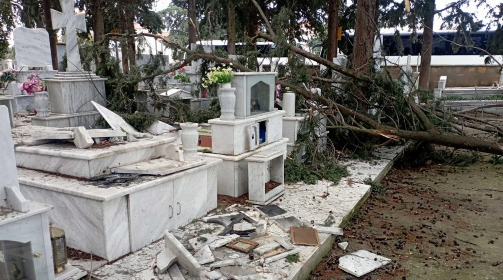 Μεγάλες ζημιές καταγράφηκαν και σταδιακά επιδιορθώνονται από συνεργεία του Δήμου στο γήπεδο «Φώτης Κοσμάς», στα γήπεδα τένις, όπου έγινε ήδη η αποκατάσταση της πεσμένης περίφραξης, ενώ στα Α’ και Β’ νεκροταφεία η καταστροφή ήταν τόσο μεγάλη σε αρκετά μνήματα που, όπως είπε ο κ. Ζαμπούκης, «έμοιαζε σαν να είχαν βανδαλιστεί από ανθρώπινο χέρι». Οι εργασίες απομάκρυνσης των πεσμένων δέντρων ολοκληρώνονται στο Α’ νεκροταφείο και θα ακολουθήσει η ίδια διαδικασία στο Β’ και στη συνέχεια και στο Δωρικό, όπου επίσης σημειώθηκαν πολλές ζημιές.