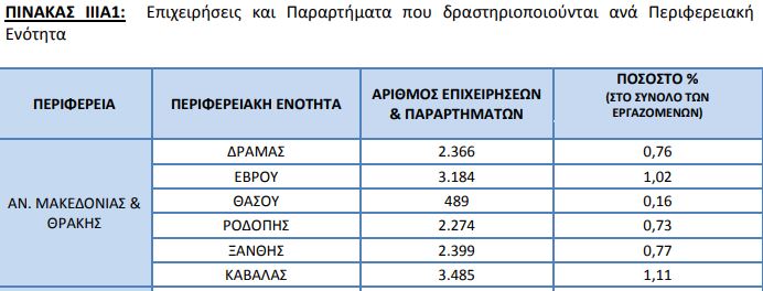 Ο αριθμός των επιχειρήσεων που δραστηριοποιήθηκαν στην Ανατολική Μακεδονία και Θράκη, το 2019, ήταν 12.334, ενώ μαζί με τα παραρτήματά τους, ο αριθμός τους φτάνει στις 14.197. Αντίστοιχα, το 2018, οι επιχειρήσεις στην ΑΜΘ ήταν 12.048 και με τα παραρτήματα 13.842.