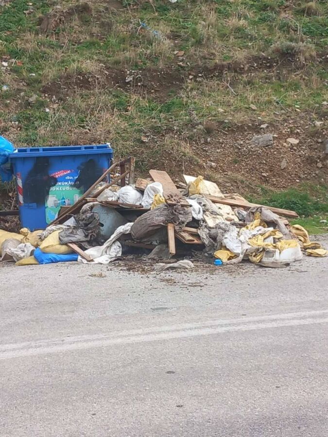 Για την παράνομη εναπόθεση μπαζών στους κάδους κάτω από τον Πύργο στην είσοδο της Χώρας, στον δρόμο προς Παλαιάπολη. Η δημοτική αρχή κάνει λόγο για απαράδεκτες συμπεριφορές ενώ άμεσα έγινε παρέμβαση απομάκρυνσης των αντικειμένων
