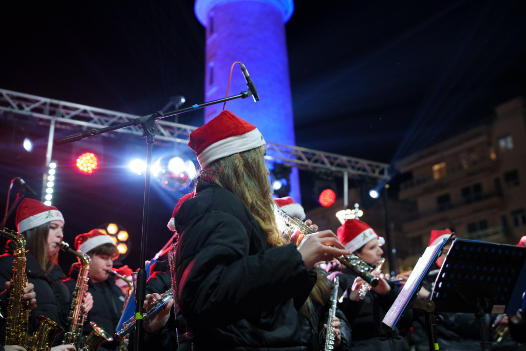 Στην πλατεία του Φάρου, οι συμμετέχοντες ζέσταναν με τις μελωδίες τους παρά το πολύ κρύο, οι Φιλαρμονικές του Δήμου Αλεξανδρούπολης με Αρχιμουσικό την Βασιλική Χατζηβασιλειάδου, του Δήμου Δράμας με Αρχιμουσικό τον Παντελή Κανδυλανάπτη και της Δ.Ε Ξηροποτάμου Δράμας Αθανάσιου Πασχάλη.