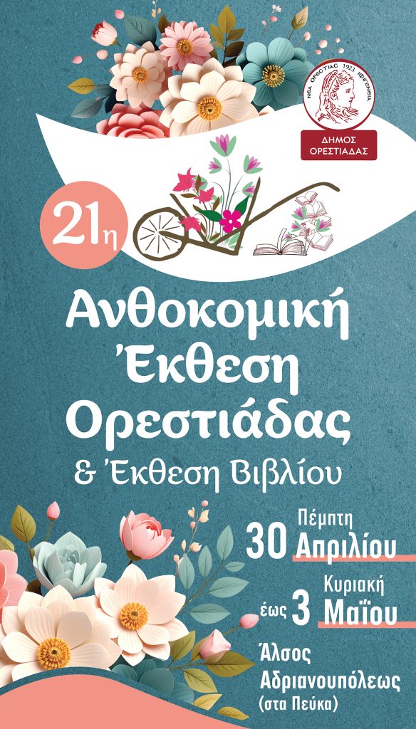 Σε έναν από τους πιο καθιερωμένους ανοιξιάτικους θεσμούς της περιοχής εξελίσσεται και φέτος η 21η Ανθοκομική Έκθεση και Έκθεση Βιβλίου Ορεστιάδας, η οποία θα πραγματοποιηθεί από τις 30 Απριλίου έως τις 3 Μαΐου 2026 στον πευκώνα της πόλης.