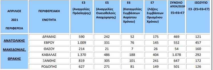 Στην Περιφέρεια ΑΜΘ, τον Απρίλιο είχαμε 4.629 προσλήψεις και 3.301 οι απολύσεις. Θετικό και εδώ το πρόσημο, κατά 1.328 θέσεις εργασίας.