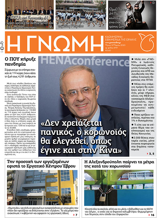 Πέμπτη 12 Μαρτίου – Αρ.φύλλου 8797 ΓΝΩΜΗ Εκδόσεις 12 Μαρτίου 2020 by Η Γνωμη 1Like Εάν είστε συνδρομητής κάντε κλικ στο πρωτοσέλιδο για να ξεφυλλίσετε. Για να εγγραφείτε συνδρομητής, κάντε κλικ εδώ