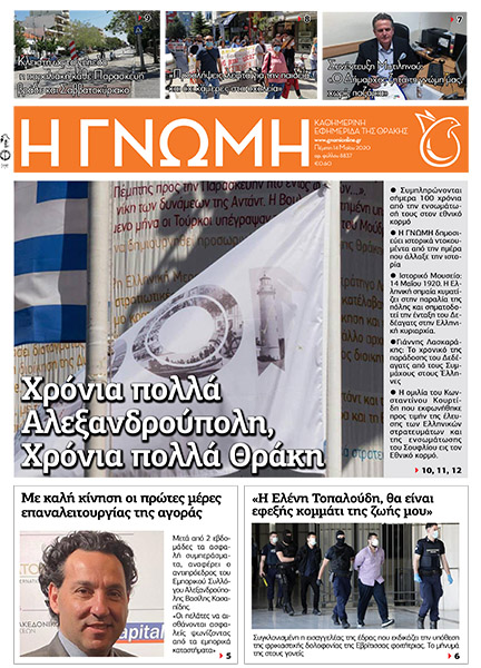 Πέμπτη 14 Μαΐου- Αρ.φύλλου 8837 ΓΝΩΜΗ Εκδόσεις 14 Μαΐου 2020 by Η Γνωμη 1Like Εάν είστε συνδρομητής κάντε κλικ στο πρωτοσέλιδο για να ξεφυλλίσετε. Για να εγγραφείτε συνδρομητής, κάντε κλικ εδώ