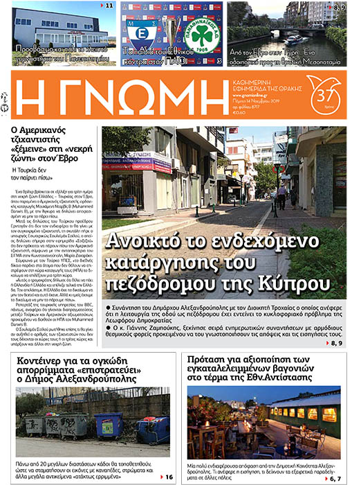 Πέμπτη 14 Νοεμβρίου – Αρ.φύλλου 8717 ΓΝΩΜΗ Εκδόσεις 14 Νοεμβρίου 2019 by Η Γνωμη 0Likes Εάν είστε συνδρομητής κάντε κλικ στο πρωτοσέλιδο για να ξεφυλλίσετε. Για να εγγραφείτε συνδρομητής, κάντε κλικ εδώ