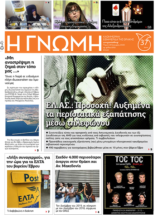 Πέμπτμ 23 Ιανουαρίου – Αρ.φύλλου 8763 ΓΝΩΜΗ Εκδόσεις 23 Ιανουαρίου 2020 by Η Γνωμη 0Likes Εάν είστε συνδρομητής κάντε κλικ στο πρωτοσέλιδο για να ξεφυλλίσετε. Για να εγγραφείτε συνδρομητής, κάντε κλικ εδώ