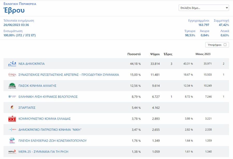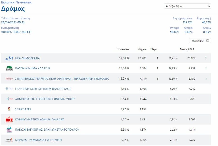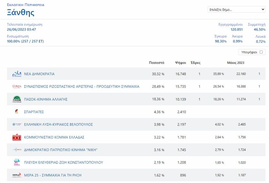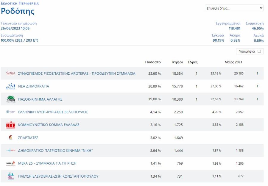 Παρέμεινε πρώτη δύναμη στη Ροδόπη ο ΣΥΡΙΖΑ, μικρή διαφορά ΝΔ – ΣΥΡΙΖΑ στο νομό Ξάνθης, βουλευτές εκλέγει το ΠΑΣΟΚ σε Ροδόπη, Ξάνθη, Δράμα. Τα ποσοστά των κομμάτων ανά νομό