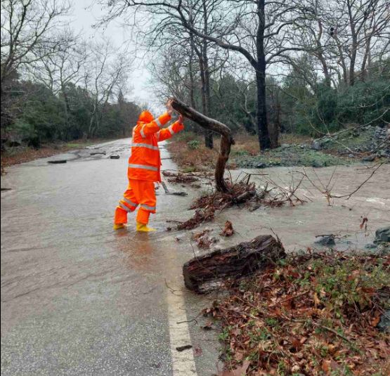 Πολύωρη βροχόπτωση κατέστησε το οδικό δίκτυο μή προσπελάσιμο σε αρκετά σημεία.