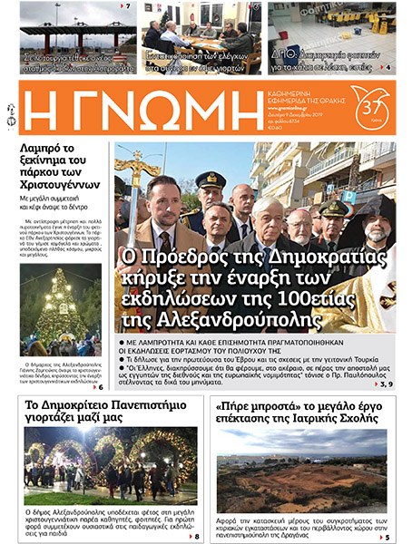 Σάββατο 9 Δεκεμβρίου – Αρ.φύλλου 8734 ΓΝΩΜΗ Εκδόσεις 9 Δεκεμβρίου 2019 by Η Γνωμη 0Likes Εάν είστε συνδρομητής κάντε κλικ στο πρωτοσέλιδο για να ξεφυλλίσετε. Για να εγγραφείτε συνδρομητής, κάντε κλικ εδώ