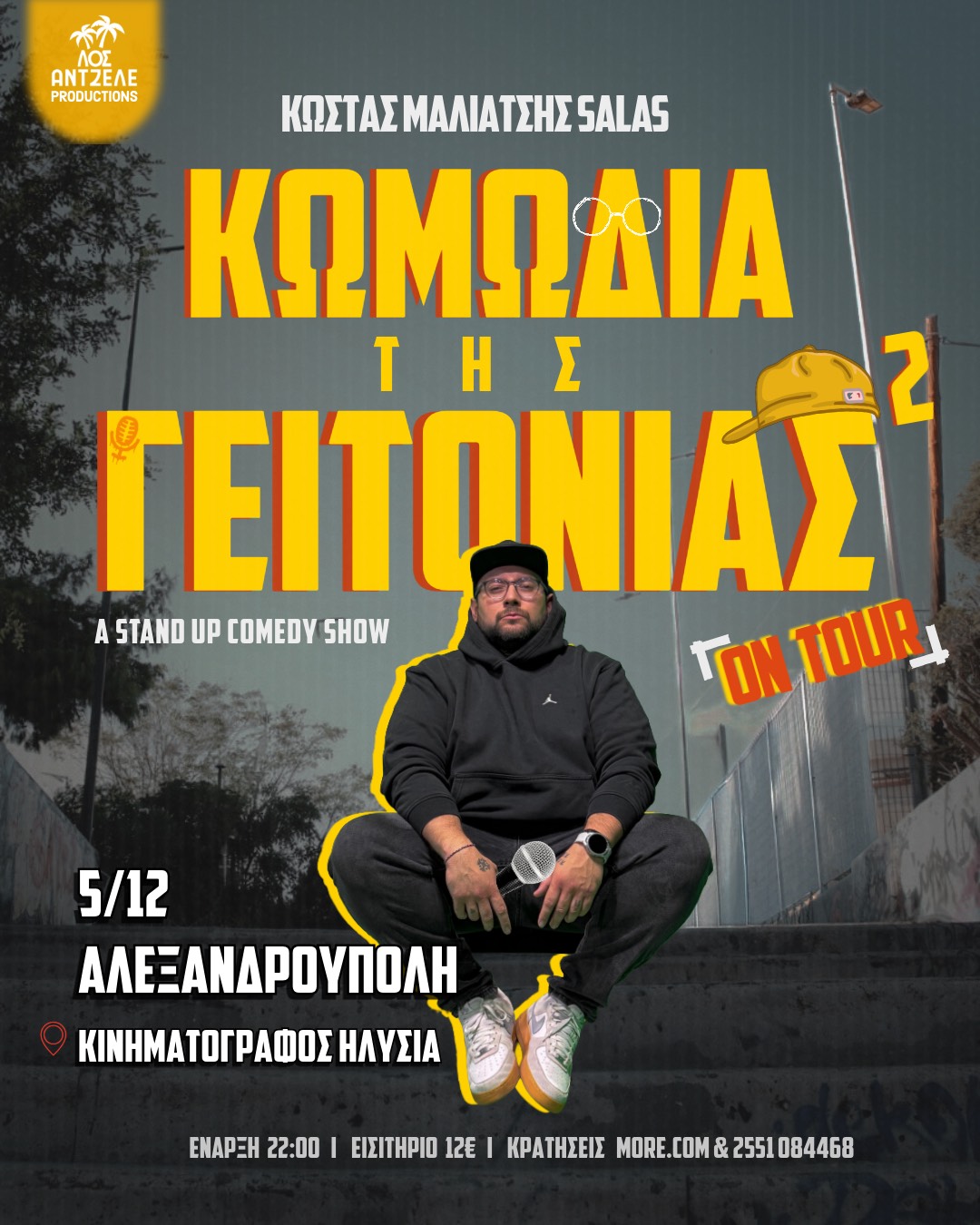 Επίσης κοντά μας η stand up comedy παράσταση, «Κωμωδία της Γειτονιάς 2» με τον Κώστα Μαλιάτση…
