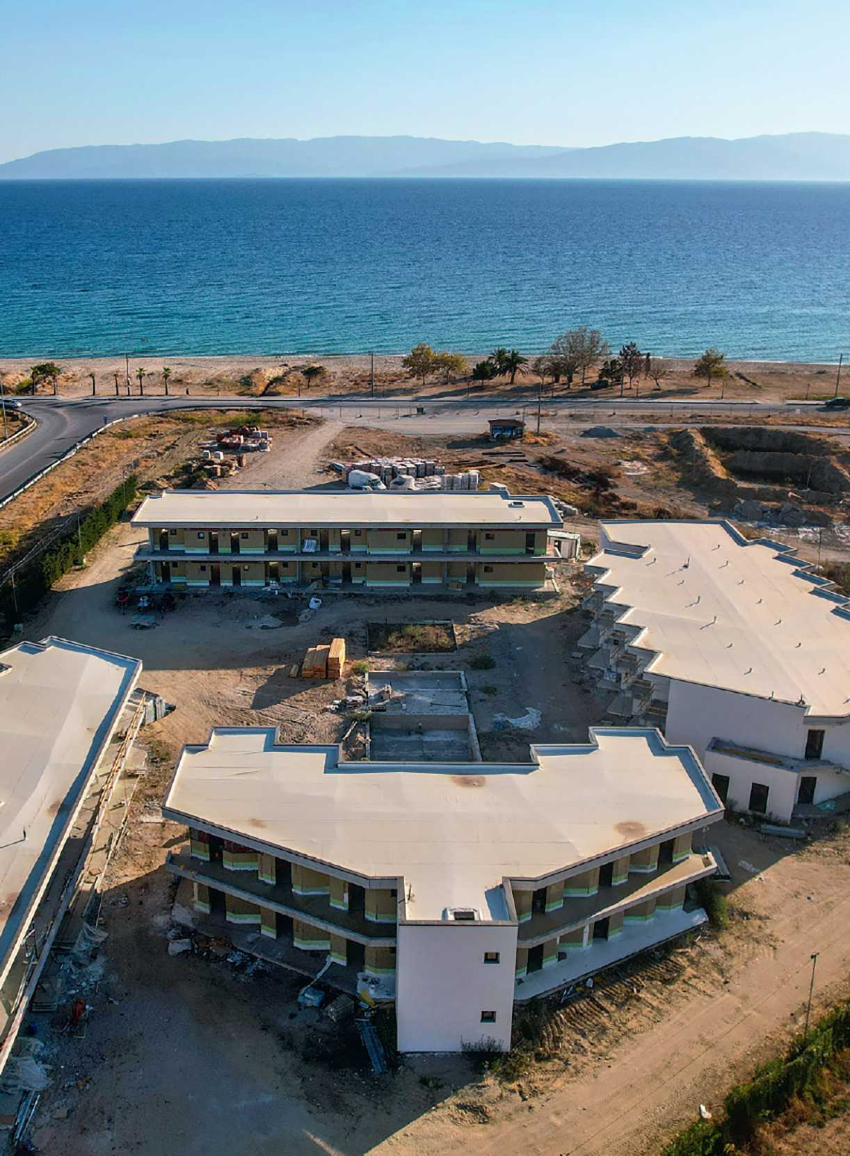 Αυτό γίνεται εύκολα αντιληπτό και με μια βόλτα στην πλαζ. Στα παραθαλάσσια οικόπεδα, είτε εκτελούνται οικοδομικές εργασίες με τεράστιους εκσκαφείς που σκάβουν για να μεταφέρουν χώμα θολώνοντας την ατμόσφαιρα είτε στέκουν ήδη παρατεταγμένα μικρά, νεόδμητα σπιτάκια. Μια νέα πόλη, πάνω από την πόλη. Στα οικόπεδα όπου δεν συμβαίνει κάτι από τα παραπάνω, πωλούνται όνειρα προσεχώς. Μεγάλες αφίσες με μακέτες «εξοχικών διαμερισμάτων» υπόσχονται την καλοκαιρινή φαντασίωσης, στα αγγλικά και με την εικόνα ενός χαρούμενου ζευγαριού: «Πρώτα ερωτεύεστε. Μετά επενδύετε. Εδώ είναι η παραλία του Οφρυνίου».