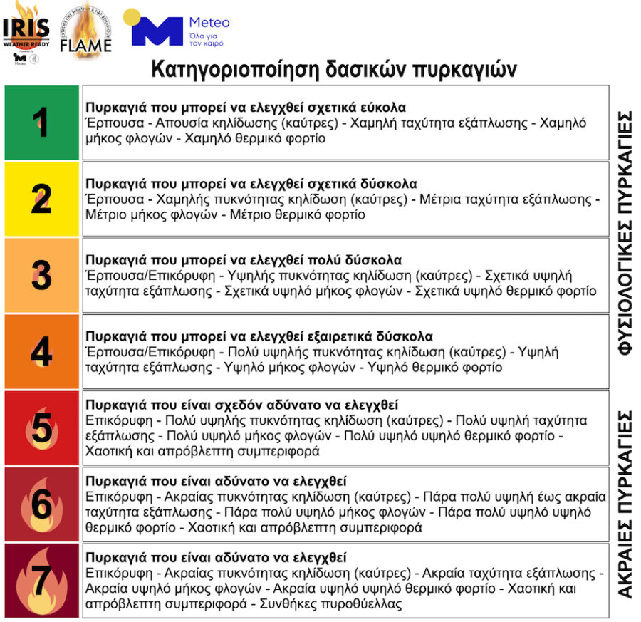 Εικόνα 1. Κατηγοριοποίηση δασικών πυρκαγιών1 με βάση τη συμπεριφορά πυρός και τη δυσκολία ελέγχου.