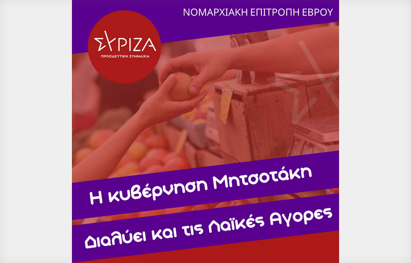 Ανακοίνωση της Νομαρχιακής Επιτροπής Έβρου του ΣΥΡΙΖΑ – Προοδευτική Συμμαχία για τις Λαϊκές Αγορές