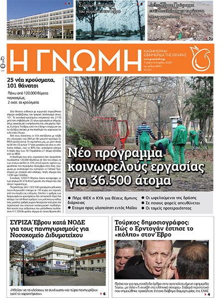 Τετάρτη 15 Απριλίου – Αρ.φύλλου 8820 ΓΝΩΜΗ Εκδόσεις 15 Απριλίου 2020 by Η Γνωμη 1Like Εάν είστε συνδρομητής κάντε κλικ στο πρωτοσέλιδο για να ξεφυλλίσετε. Για να εγγραφείτε συνδρομητής, κάντε κλικ εδώ